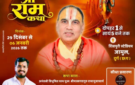 28 दिसंबर को ऐतिहासिक कलश यात्रा, 29 से *अयोध्या के जगद्गुरु राघवाचार्य महाराज की दिव्य श्रीराम कथा* जामुल। छत्तीसगढ़ की...