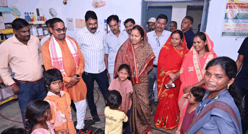 महिला एवं बाल विकास मंत्री श्रीमती लक्ष्मी राजवाड़े ने धरसेड़ी आंगनबाड़ी केंद्र का औचक निरीक्षण किया