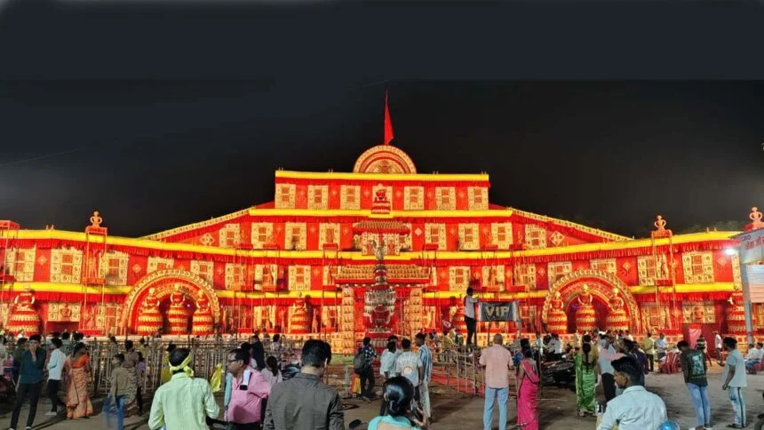 लाल मैदान पावर हाउस में 54वें वर्ष ढोकरा शिल्प की वैभवशाली 3 हजार मूर्तियों से सुसज्जित मां अंबे का दरबार