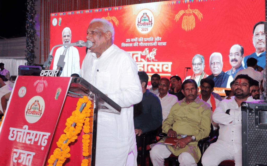 रायपुर, 03 नवंबर 2025/- छत्तीसगढ़ राज्य की स्थापना की 25वीं वर्षगांठ के अवसर पर जिला मुख्यालय मुंगेली स्थित वीर शहीद धनंजय सिंह राजपूत स्टेडियम में राज्योत्सव का भव्य आयोजन उत्साह और हर्षाेल्लास के साथ किया गया। कार्यक्रम का शुभारंभ मुंगेली विधायक श्री पुन्नूलाल मोहले के मुख्य आतिथ्य हुआ। विधायक श्री मोहले ने रजत जयंती वर्ष की बधाई एवं शुभकामनाएं दी। उन्होंने नागरिकों को राज्य बनने की पृष्ठभूमि पर विस्तार से चर्चा करते हुए बताया कि पहले परिस्थितियां कठिन थी। छत्तीसगढ़ राज्य बनने से पहले मध्यप्रदेश राज्य में शामिल था, स्थानीय जनप्रतिनिधियों की मांग पर पूर्व प्रधानमंत्री भारत रत्न स्वर्गीय श्री अटल बिहारी वाजपेयी ने 01 नवंबर 2000 को मध्यप्रदेश राज्य से अलग कर छत्तीसगढ़ राज्य बनाया। उस समय हमारा राज्य शिक्षा, स्वास्थ्य, सड़क कई मामले में हम काफी पीछे था, लेकिन राज्य बनने के बाद स्थिति बदली और हम आज विकास की दिशा में आगे बढ़ते हुए मिसाल बन रहे हैं। 25 वर्षों में हमारा छत्तीसगढ़ ऊर्जा से भरपूर युवावस्था में पहुंच चुका है। शिक्षा, स्वास्थ्य, सड़क विकास के सभी आयामों में हमारा जिला बेहतर प्रगति कर रहा है। कलेक्टर श्री कुन्दन कुमार ने स्वागत प्रतिवेदन प्रस्तुत किया।