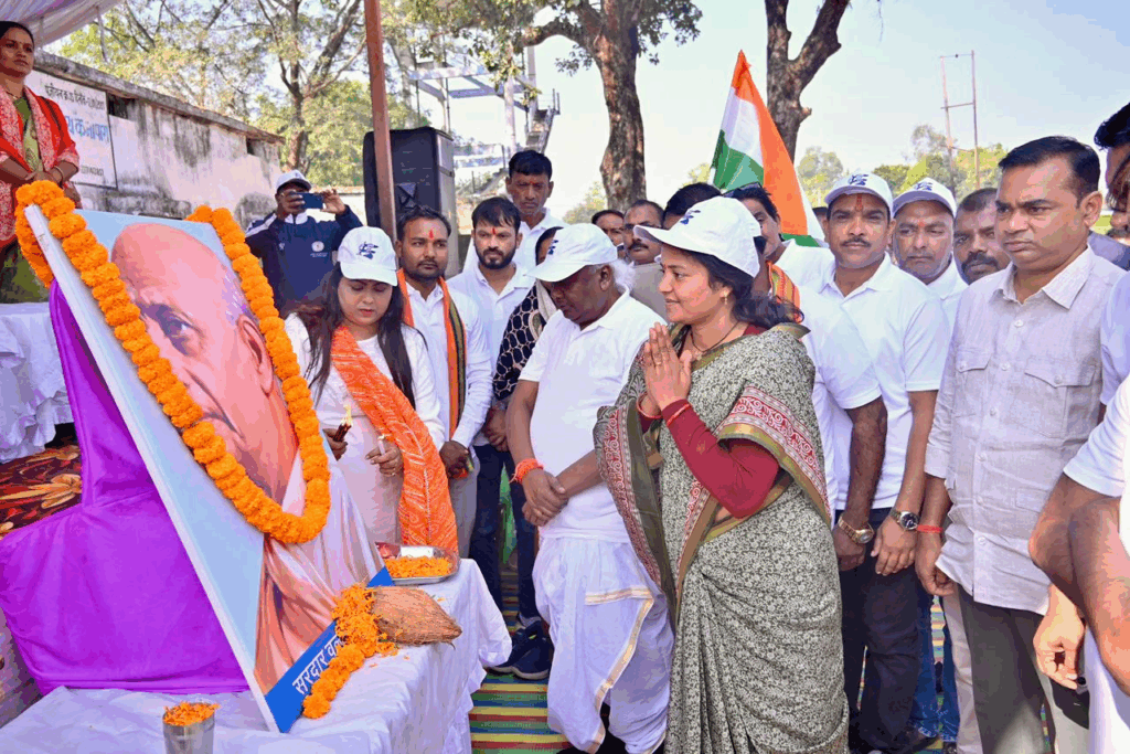रायपुर, 17 नवम्बर 2025/- अखंड भारत के शिल्पकार लौह पुरुष सरदार वल्लभभाई पटेल की 150वीं जयंती के अवसर पर सूरजपुर में आज भव्य “यूनिटी मार्च” का आयोजन किया गया।जिसमें महिला एवं बाल विकास मंत्री श्रीमती लक्ष्मी राजवाड़े ने सम्मिलित होकर लोगों का उत्साह बढ़ाया। मंत्री श्रीमती राजवाड़े ने कहा कि छत्तीसगढ़ राज्य अपना रजत जयंती वर्ष मना रहा है और इसी दौरान सरदार वल्लभभाई पटेल की 150वीं जयंती मनाना राष्ट्र के प्रति गर्व और कृतज्ञता का अवसर है। उन्होंने कहा कि सरदार पटेल ने 565 रियासतों का एकीकरण कर अखंड भारत की नींव रखी।सरदार पटेल का जीवन राष्ट्रनिष्ठा का सर्वाेत्तम उदाहरण है। त्याग, सेवा और राष्ट्रहित को सर्वाेपरि रखने की उनकी सोच सदैव प्रेरणा देती रहेगी।