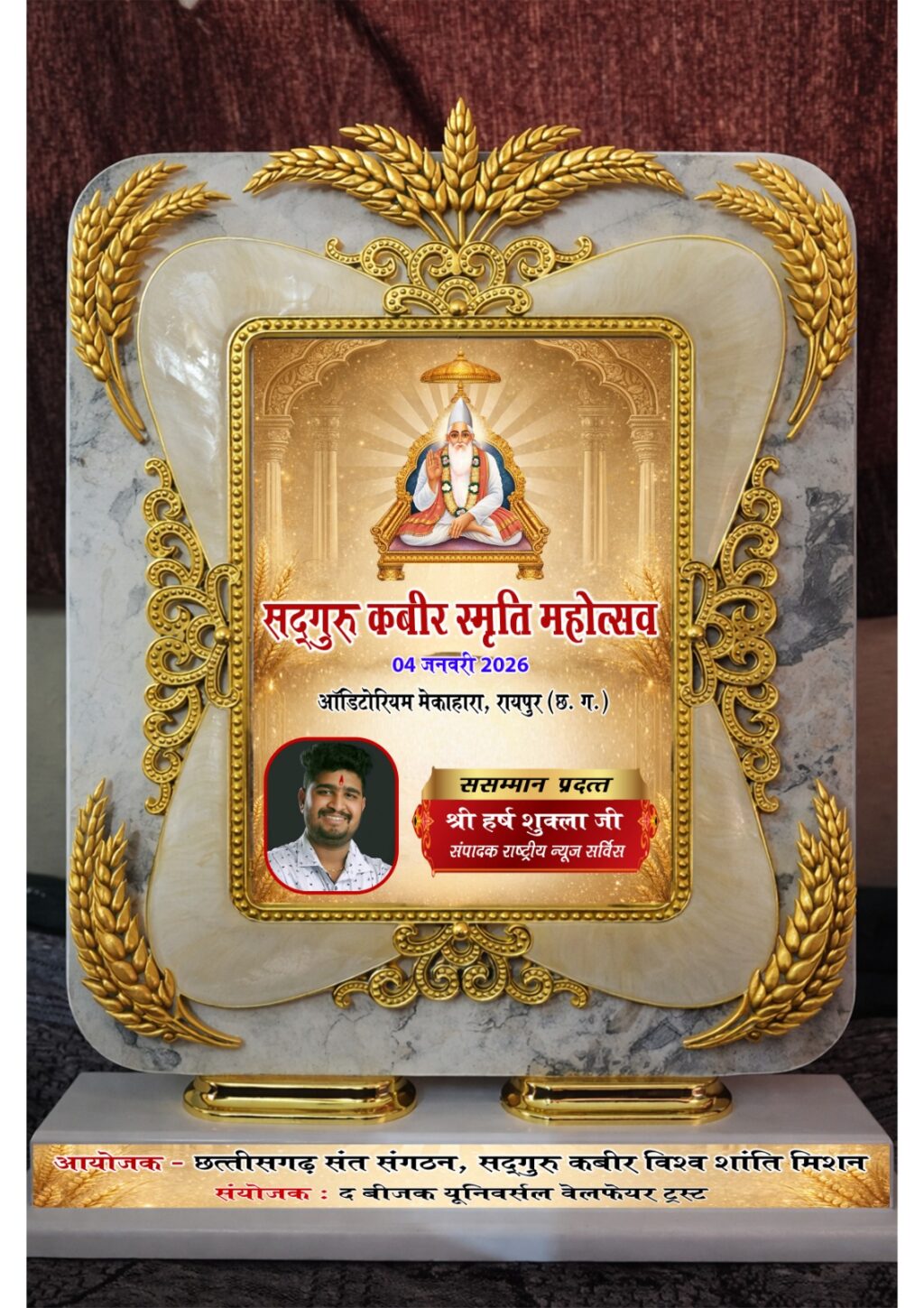 सद्गुरु कबीर स्मृति महोत्सव में आरएनएस संपादक हर्ष शुक्ला का हुआ सम्मान